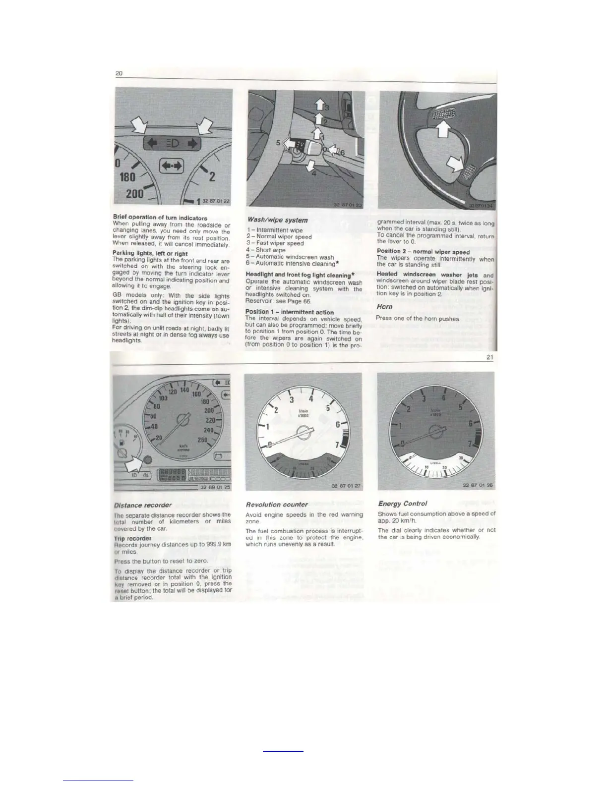 BMW E32 - Wipers, Horn, and Driver Information Displays; Wash;Wipe System Controls; Energy Control and Revolution Counter