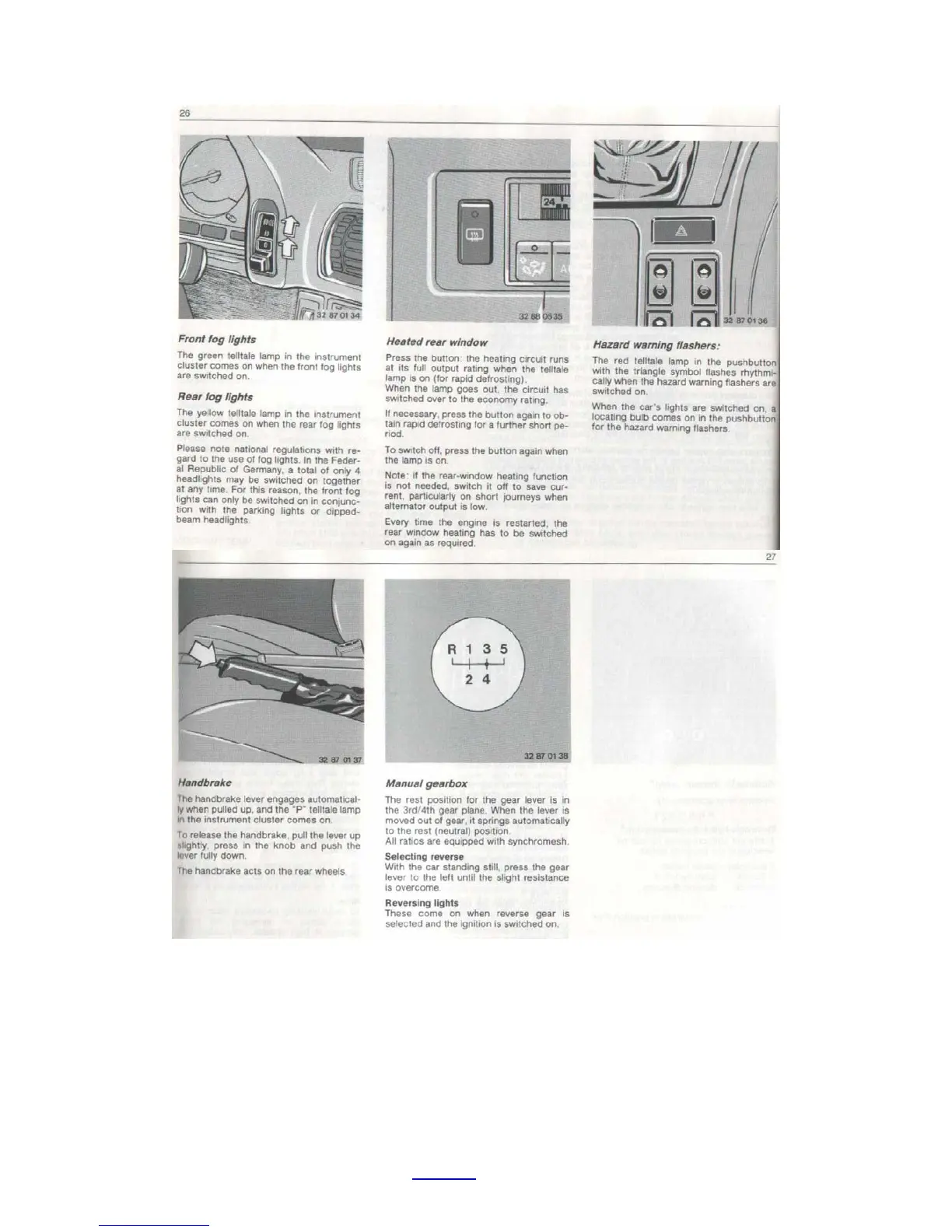 BMW E32 - Fog Lights and Hazard Warning Flashers; Manual Gearbox Operation