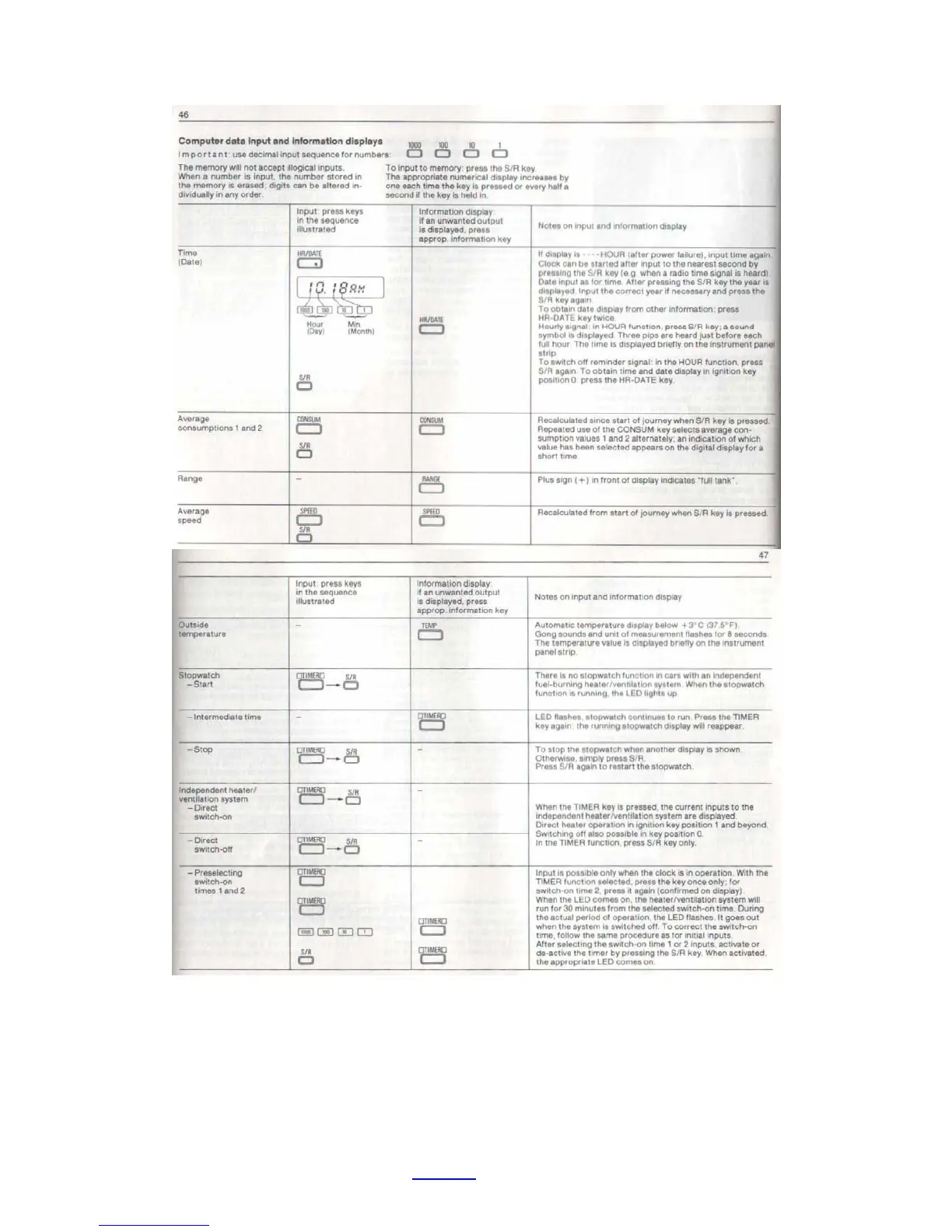 BMW E32 - On-Board Computer Data Input and Information Displays; Time, Date, and Consumption Data Input; Range, Speed, and Temperature Displays; Stopwatch and Heater;Ventilation Timer Input