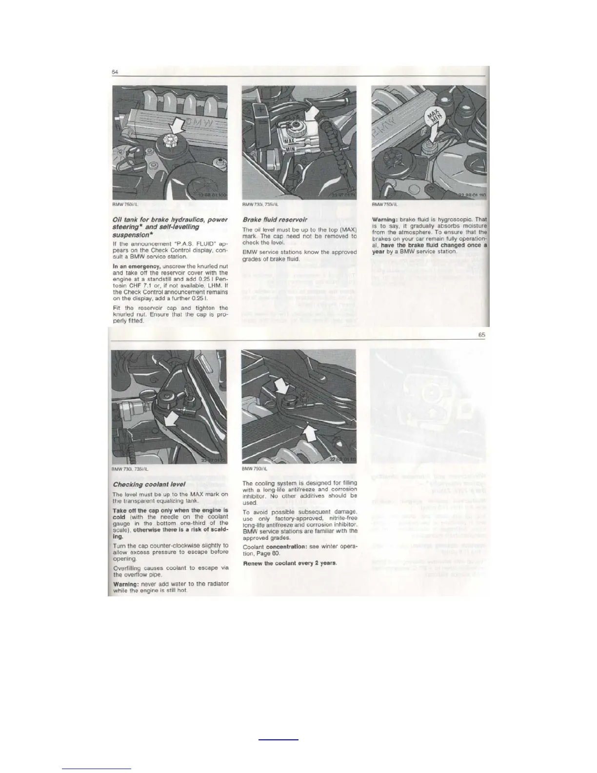 BMW E32 - Brake Fluid and Coolant Level Checks; Brake Fluid Reservoir and Maintenance; Coolant Level and Cooling System Maintenance
