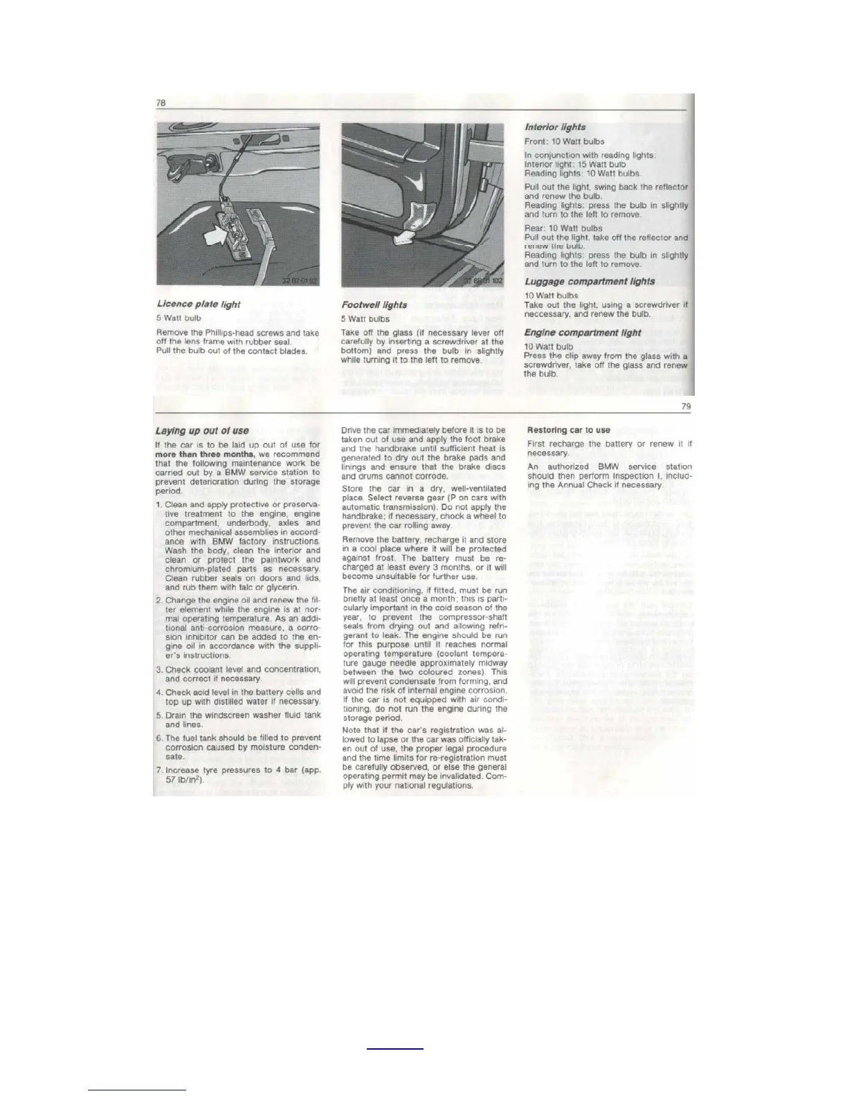 BMW E32 - Vehicle Storage and Restoration Procedures; Laying Up a Car Out of Use; Restoring a Car to Use