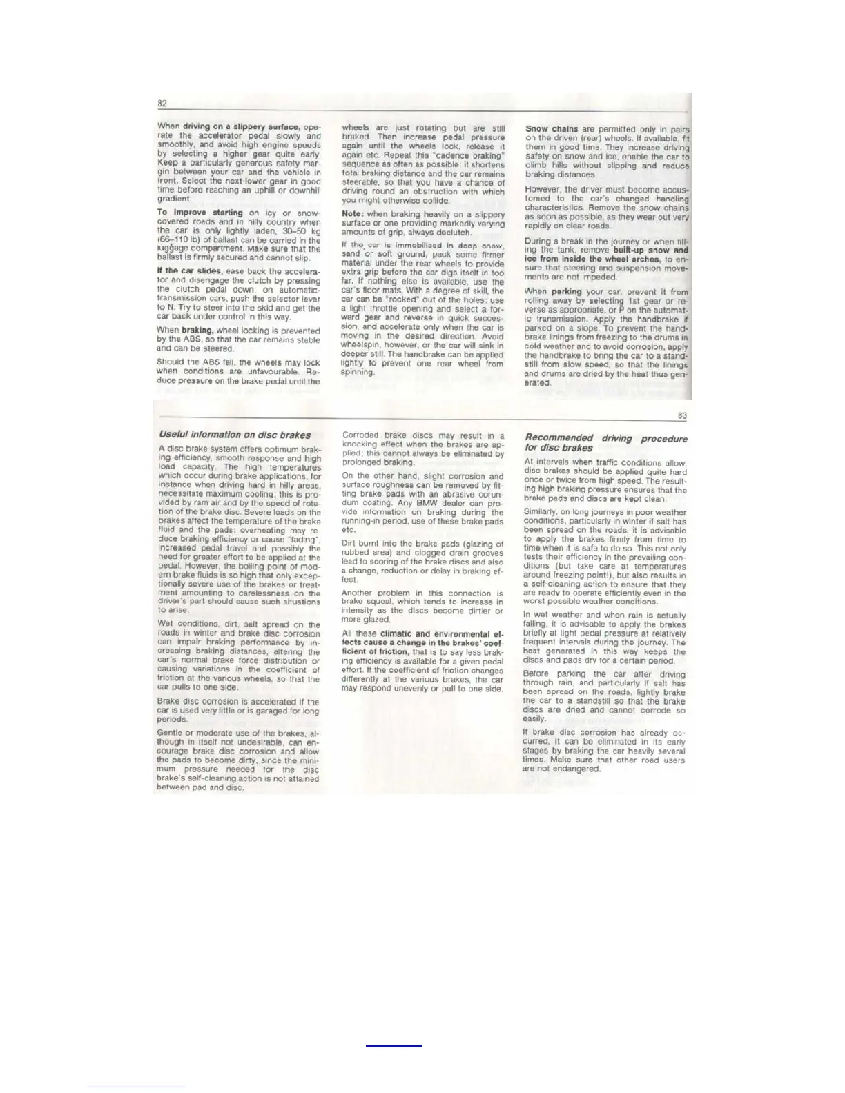 BMW E32 - Disc Brake Information and Driving Procedures; Disc Brake Performance and Maintenance; Recommended Driving Procedures for Disc Brakes
