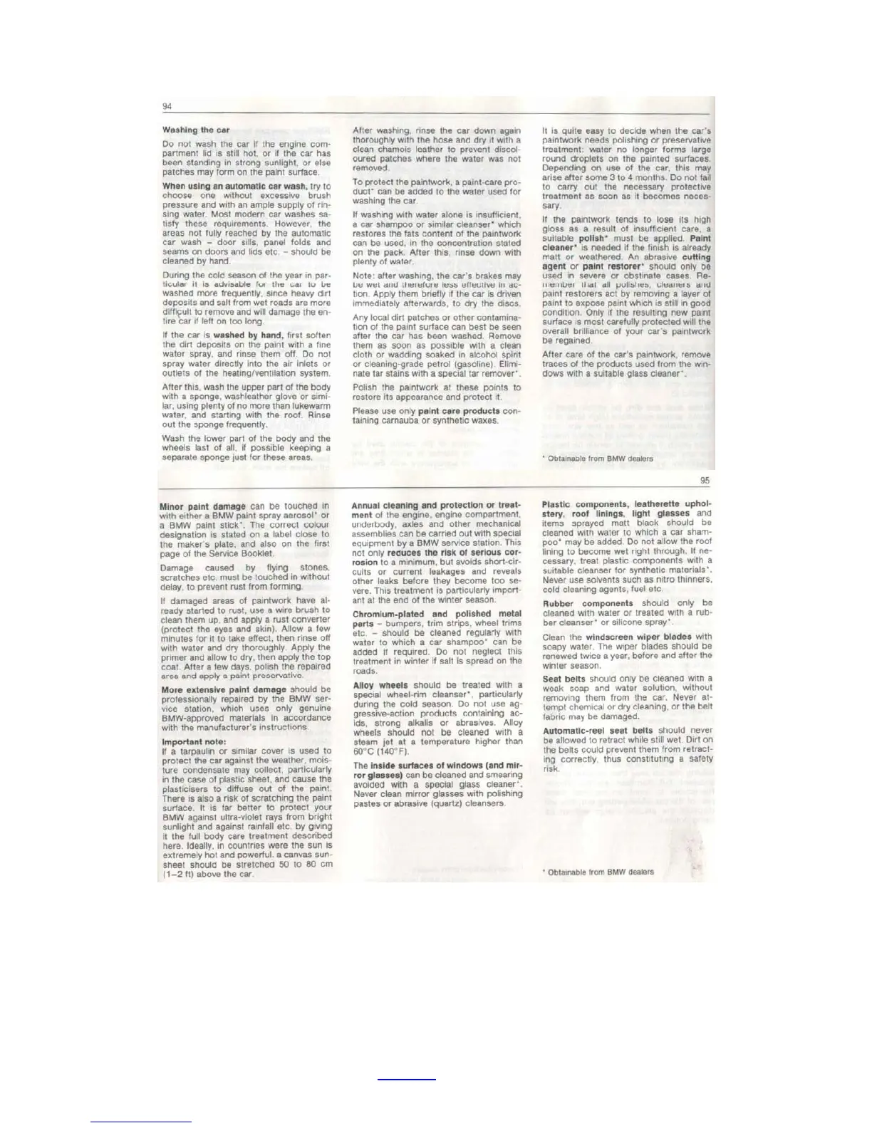 BMW E32 - Car Washing and Paintwork Maintenance; Car Washing Procedures; Paintwork Cleaning and Minor Damage Repair