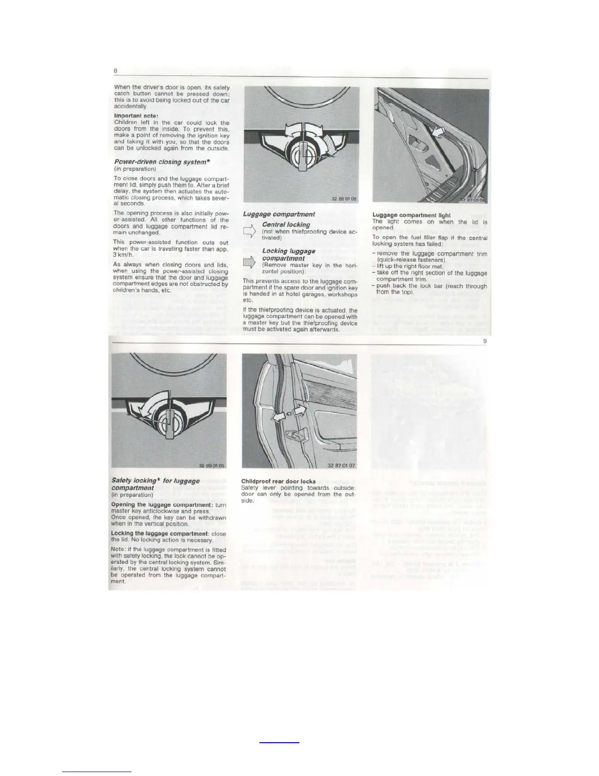 BMW E32 - Luggage Compartment Operation; Safety Locking for Luggage Compartment; Childproof Rear Door Locks