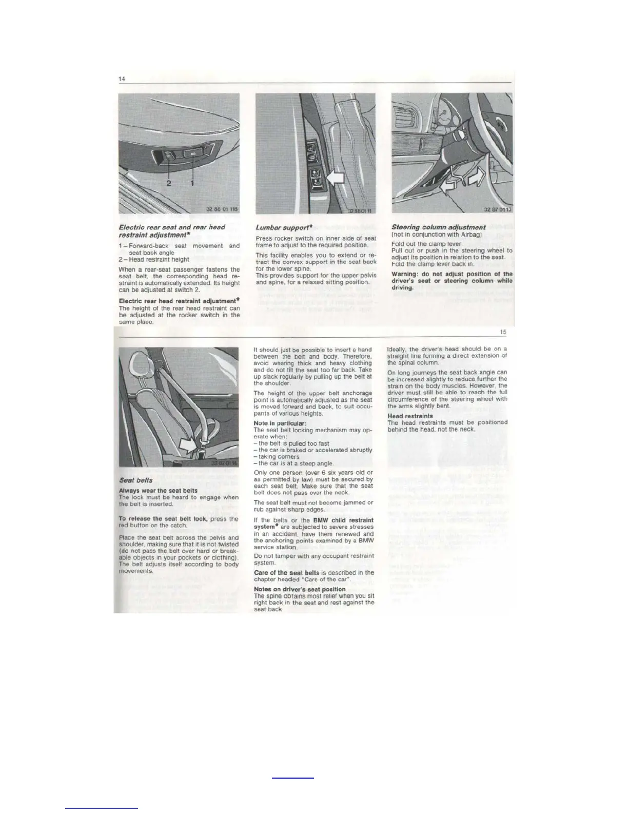 BMW E32 - Steering Column and Seat Belt Systems; Lumbar Support and Steering Column Adjustment; Seat Belt Usage and Safety