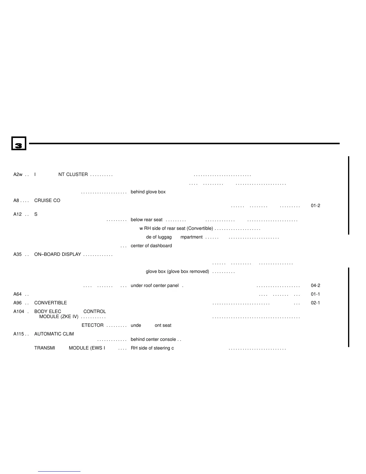 below RH side of rear seat (Convertible) . . . . . . . . . . . . . . . . . . . . . . . . . . . . . . . . . . . . .