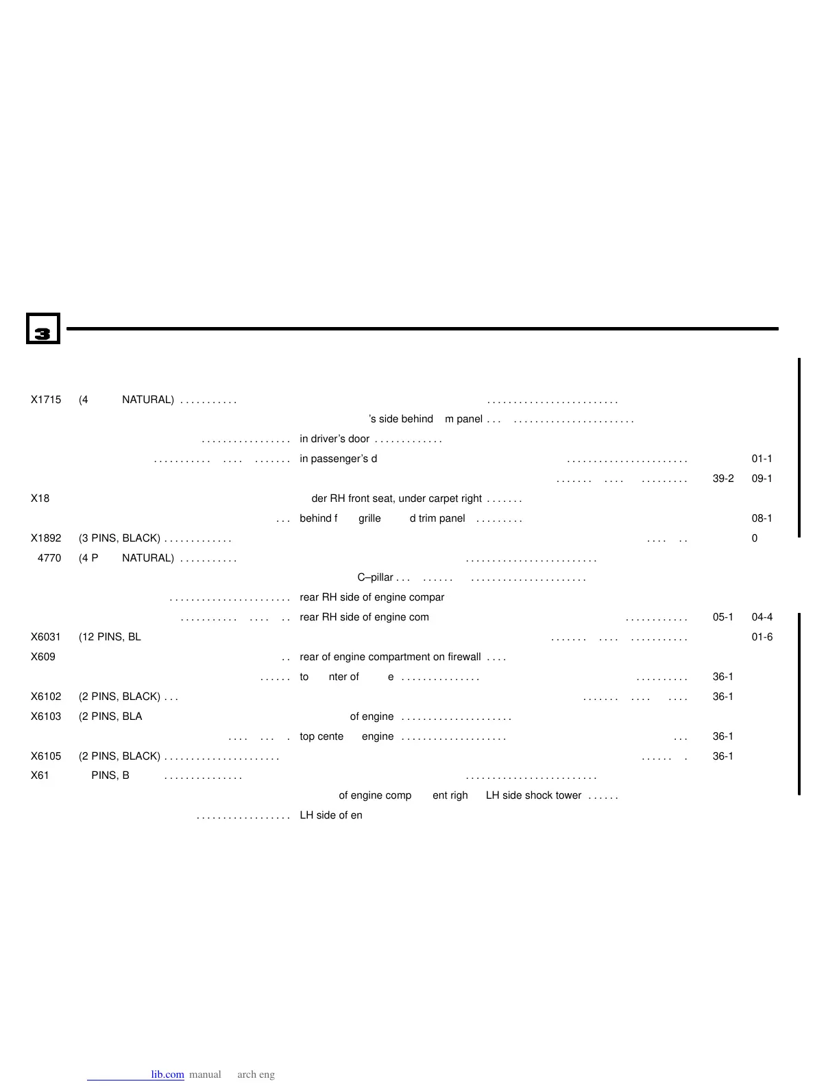 rear LH side of engine compartment . . . . . . . . . . . . . . . . . . . . . . . . . . . . . . . . . . . . . . . .