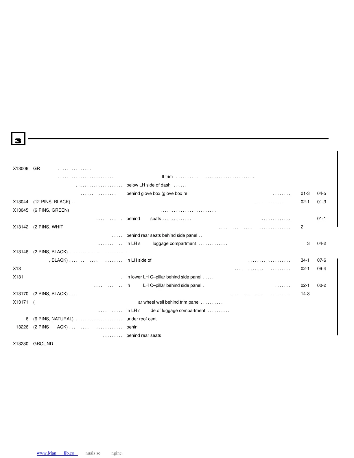 in lower LH C–pillar behind side panel . . . . . . . . . . . . . . . . . . . . . . . . . . . . . . . . . . . . . . .