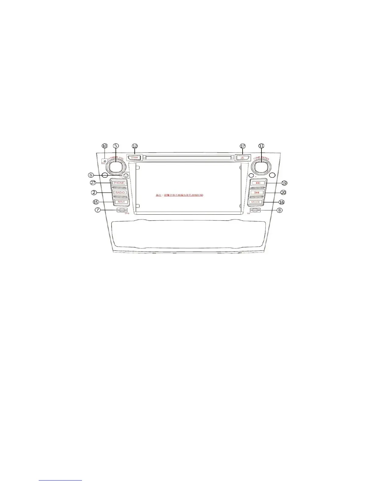Press this key in DVD/SD/FM/USB mode to select the next chapter/music; long press in to play fast forward;