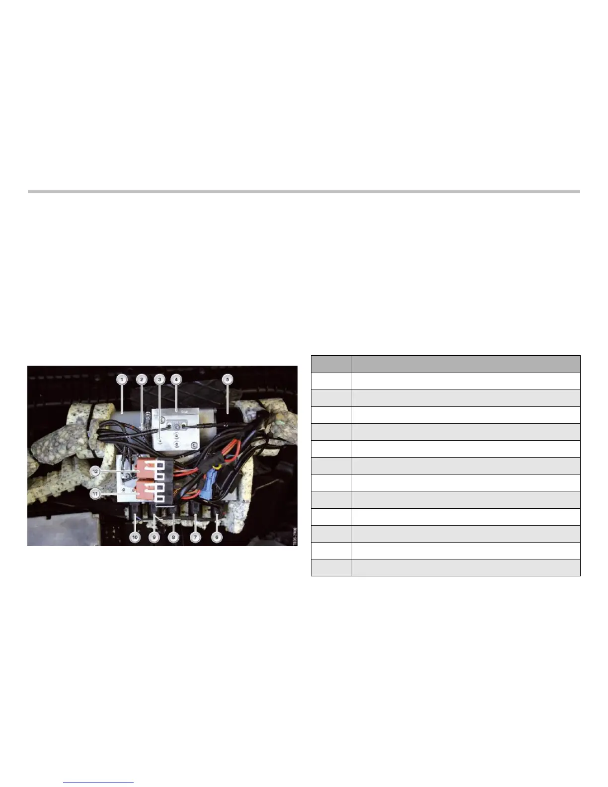 The power consumption of the electric motor is about 40 A (safeguarded by a 50 A fuse). The hydraulic pump generates an operating