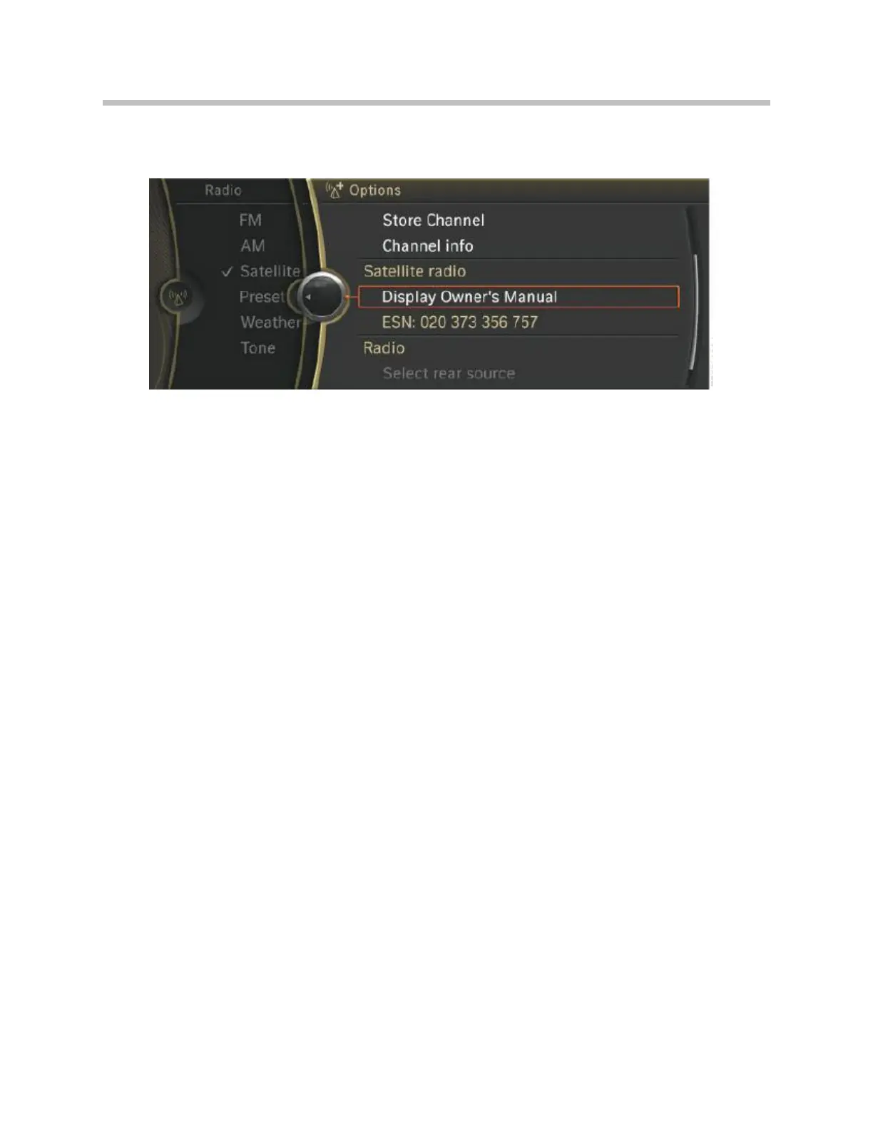 The ESN number is always shown in the “Options menu” of the satellite radio.