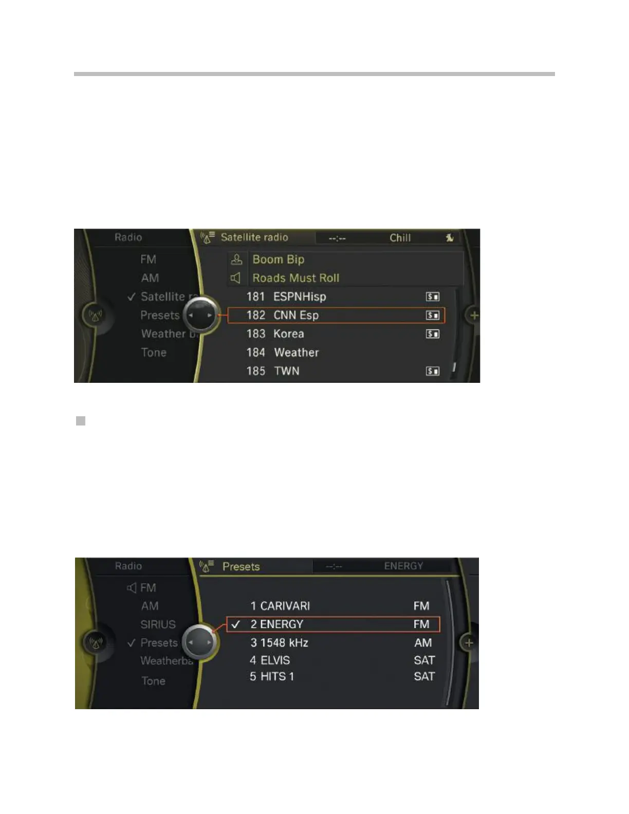 The Satellite radio service is available with a subscription to Sirius satellite radio.