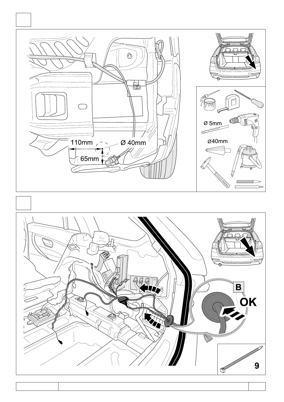 BMW F31 - Step 11: F31 Drilling; F31 Hole Drilling Guide; Step 12: F31 Cable Routing; F31 Routing Connections