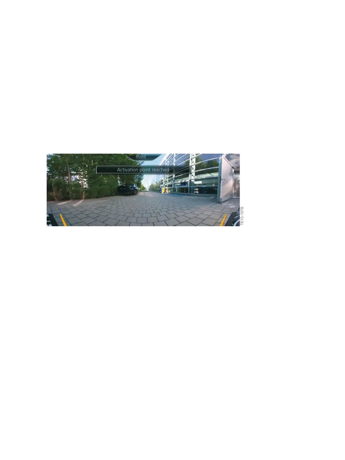Yellow�lines�in�the�screen�display�mark�the�front�and�rear�ends�of�the�vehicle.�The�camera�image�is