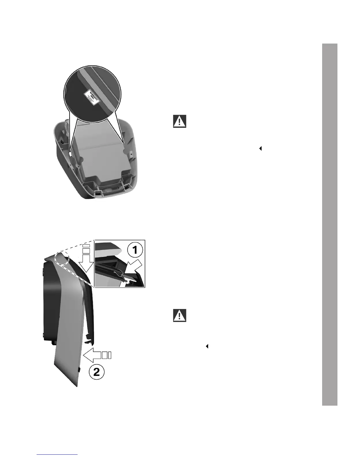 2. Affix the supplied warranty seals as shown to