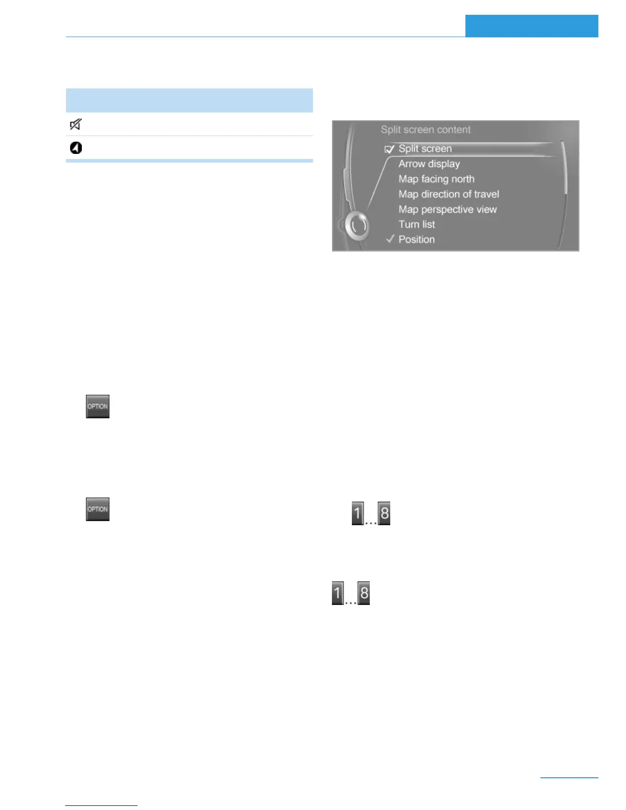 Highlight the function via the iDrive.