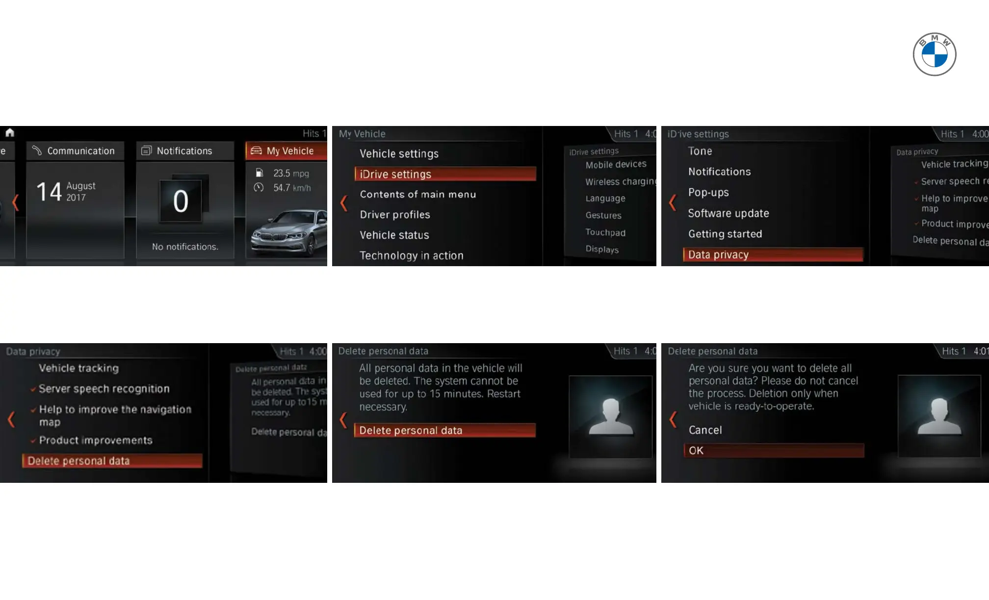 To delete personal data in vehicles equipped with iDrive 6, please follow these steps.