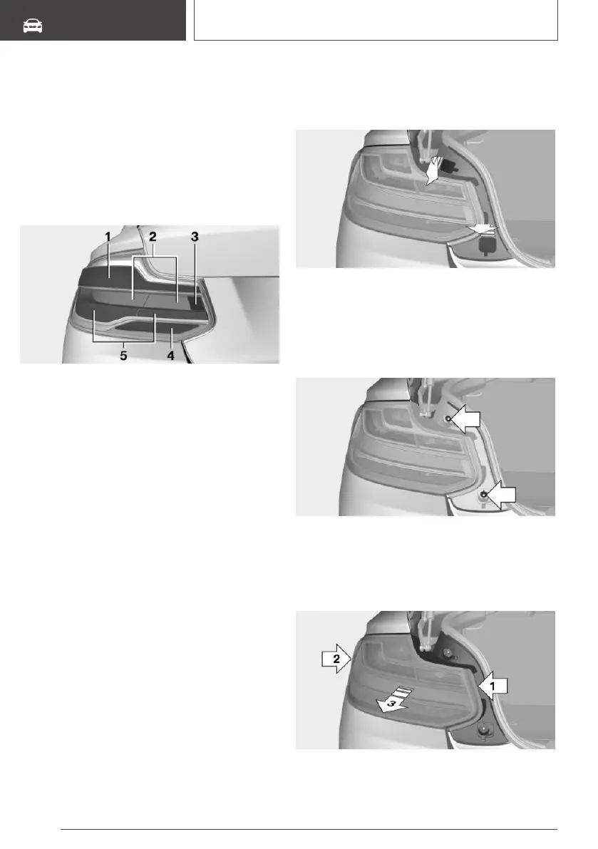 hand, arrow 2. Carefully pry out the tail light,