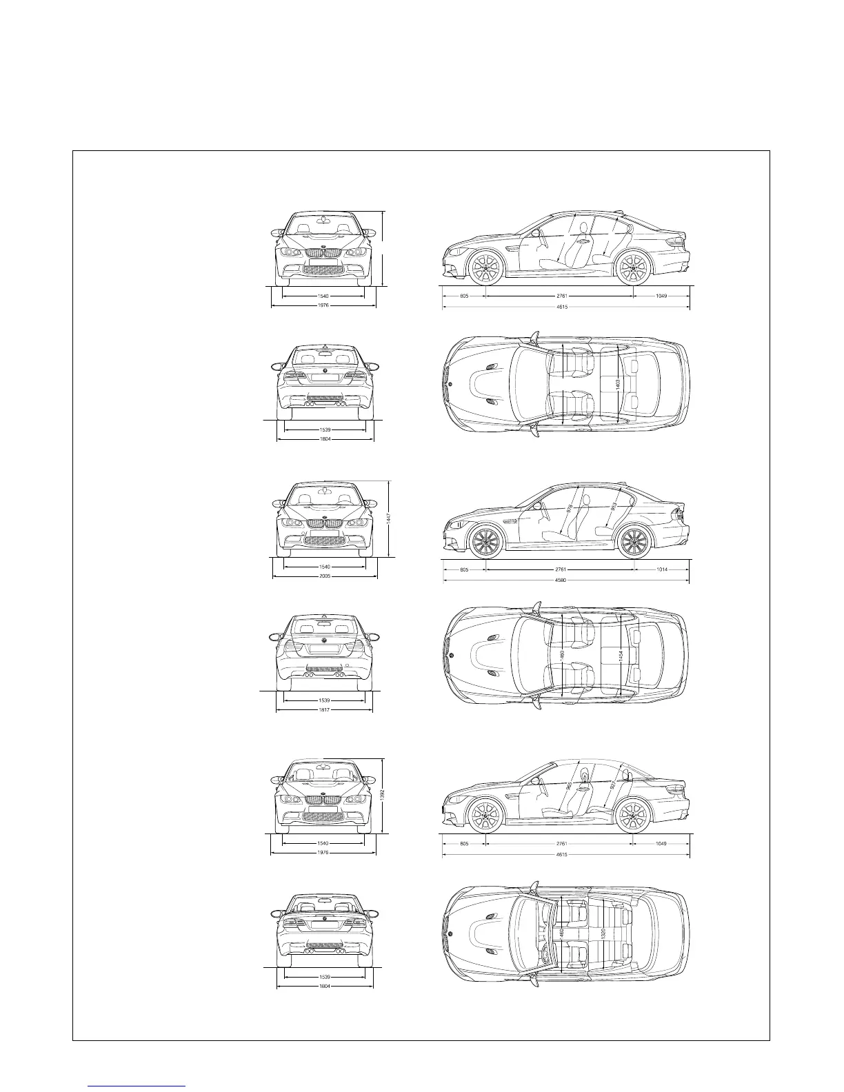 All dimensions of the technical drawings in millimetres. Luggage compartment capacity : 430 litres for the BMW M3 Coupé, 450 litres for the BMW M3 Saloon and 210 – 350 litres for the BMW Convertible.