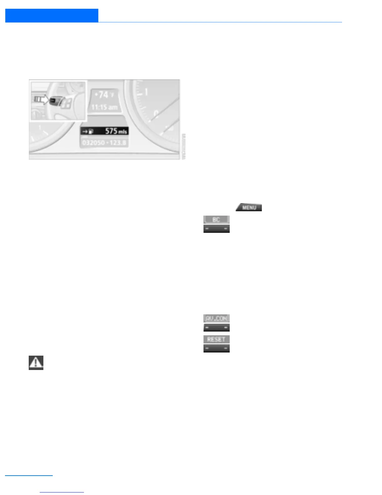 To reset average fuel consumption: press the