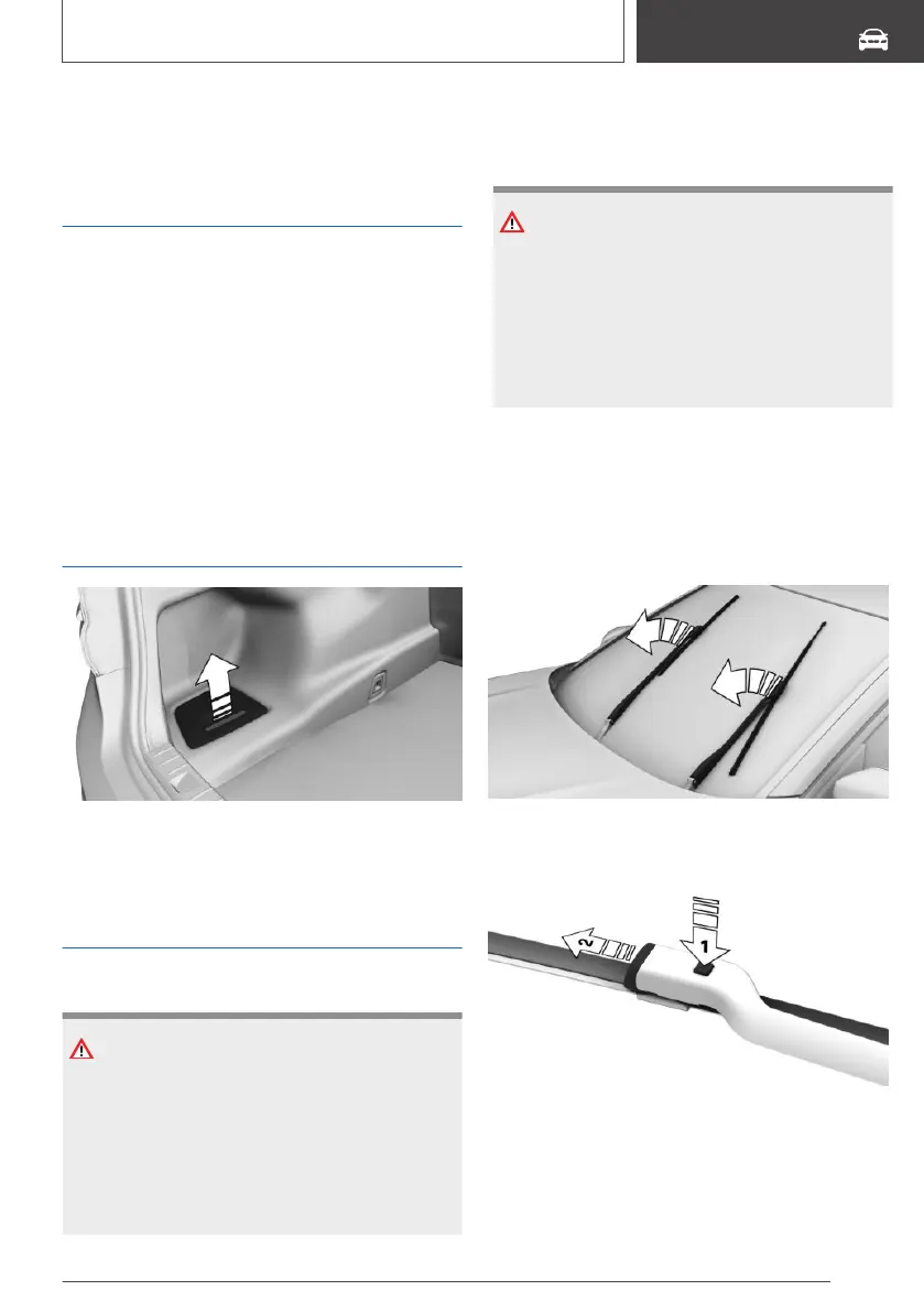 3. Press the button, arrow 1, and pull out wiper