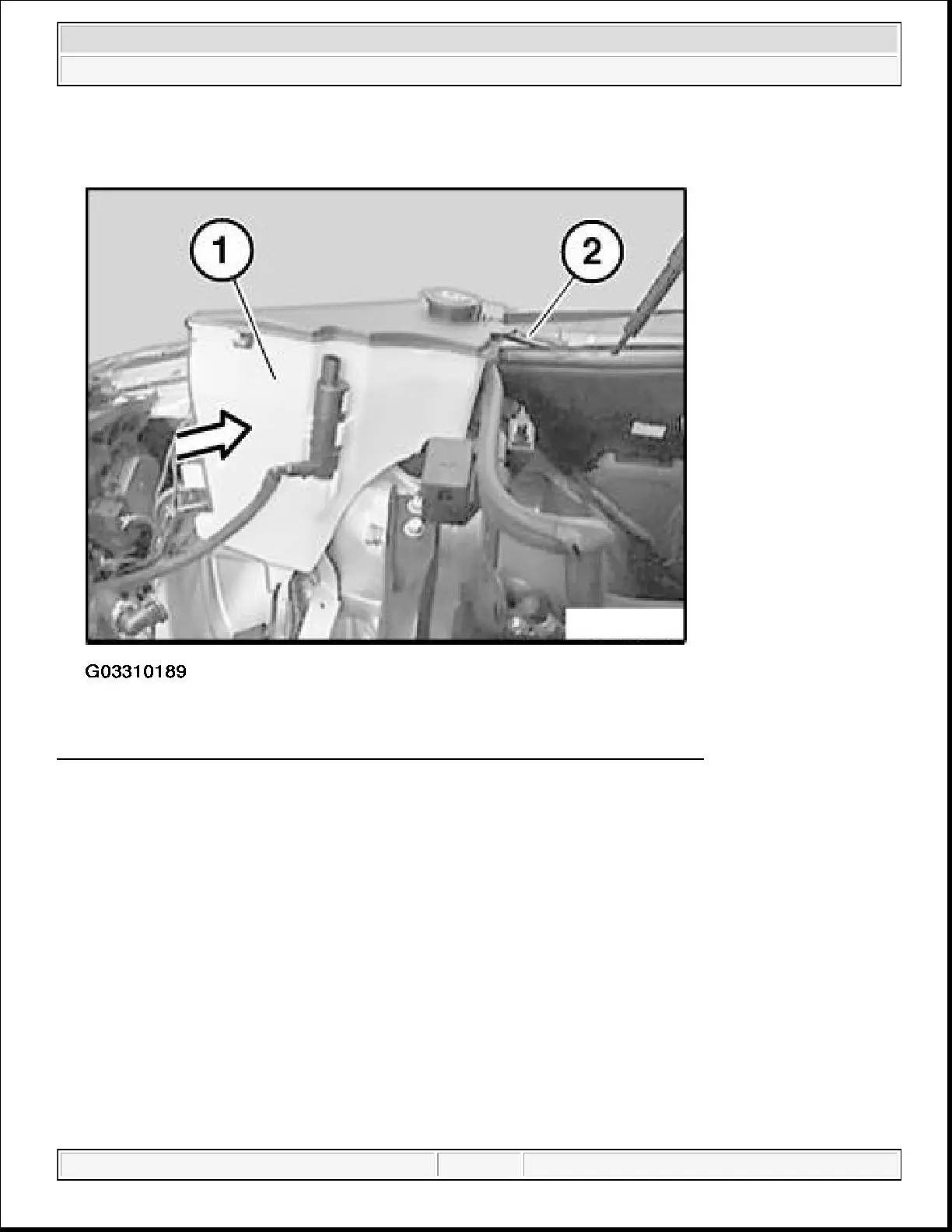 Press windscreen washer fluid reservoir (1) in direction of arrow upwards.