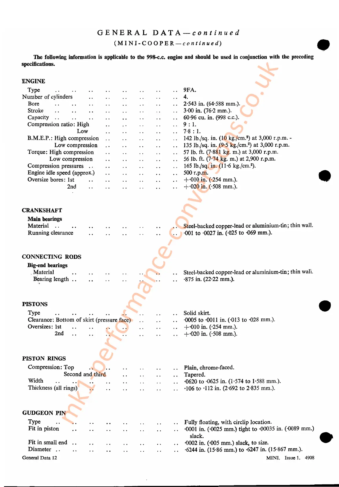 The following information is applicable to the 998-c.c. engine and should be used in conjunction with the preceding