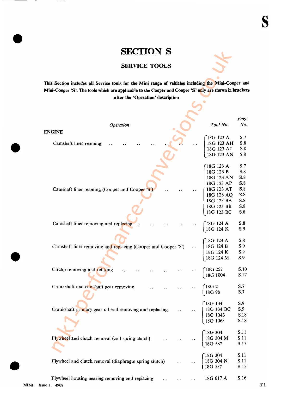 Mini-Cooper'S'. The tools which are applicable to the Cooper and