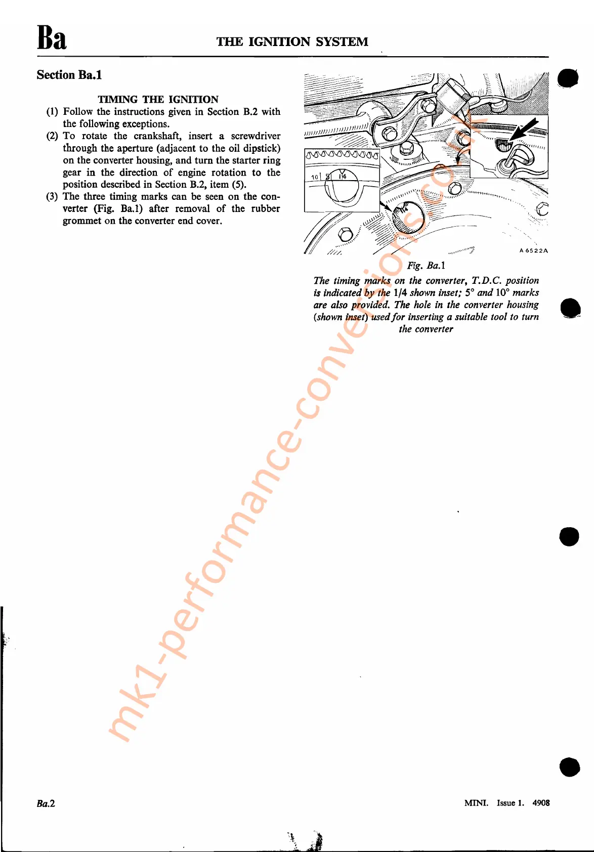 The timing marks on the converter, T.D.C. position