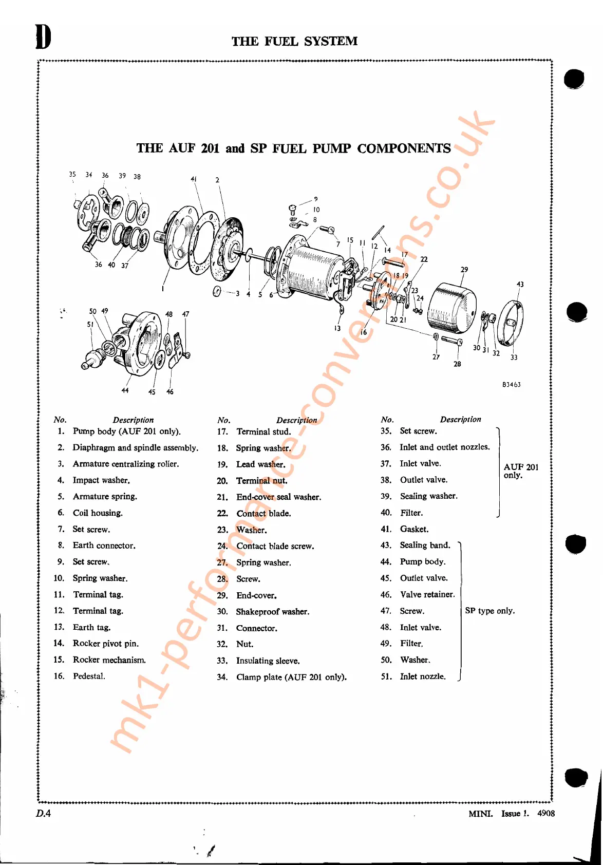 SP FUEL PUMP COMPONENTS