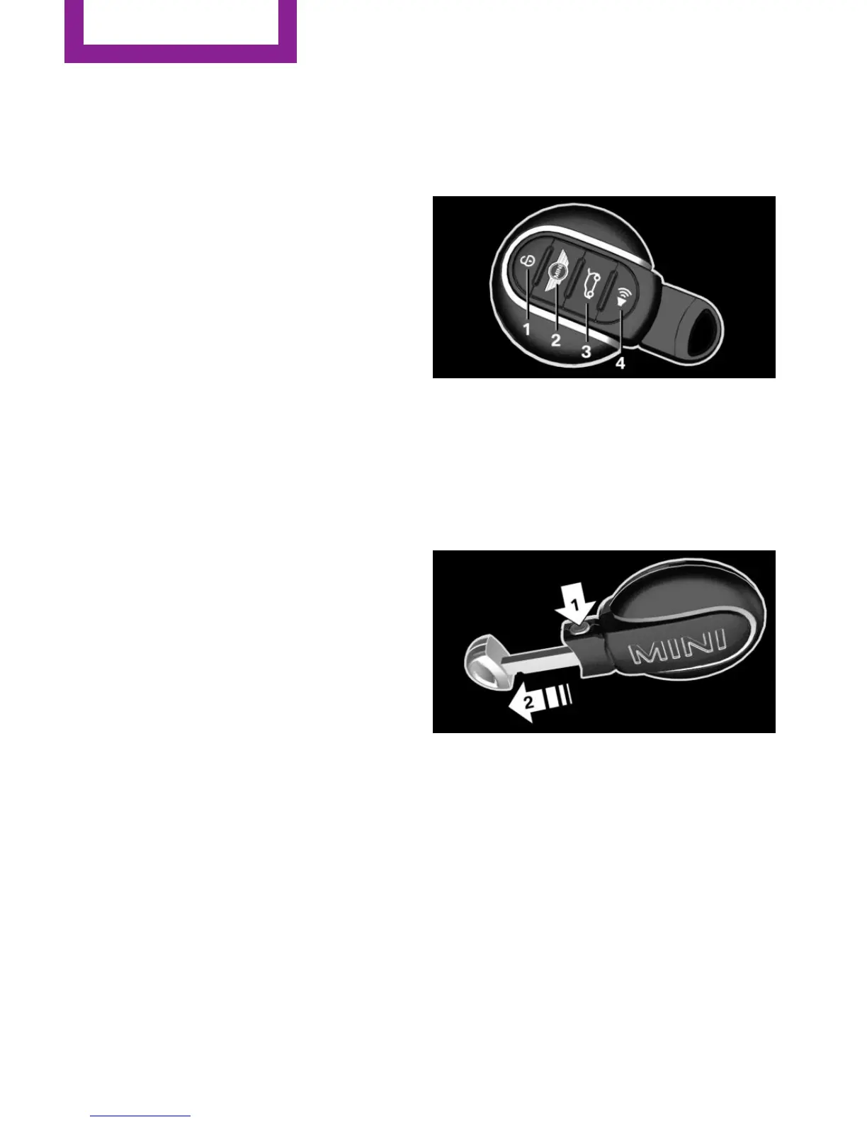 Press button, arrow 1, and remove the key, ar‐