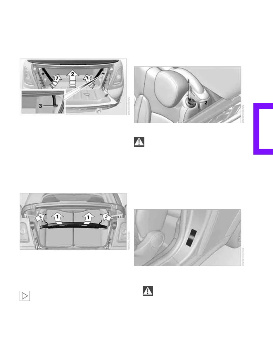 2. Lift the convertible top, see arrow 2.