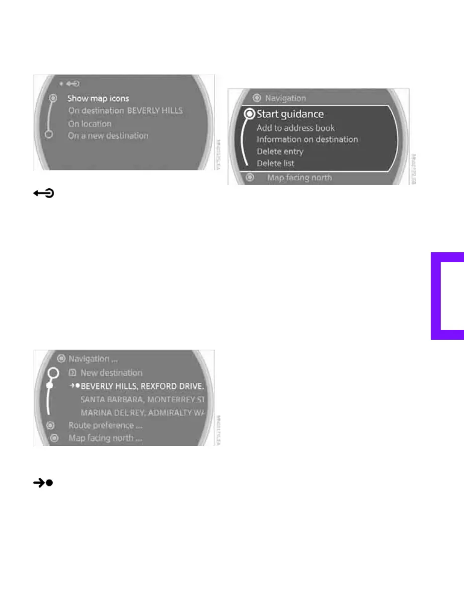 destination list, refer to Entering a destination