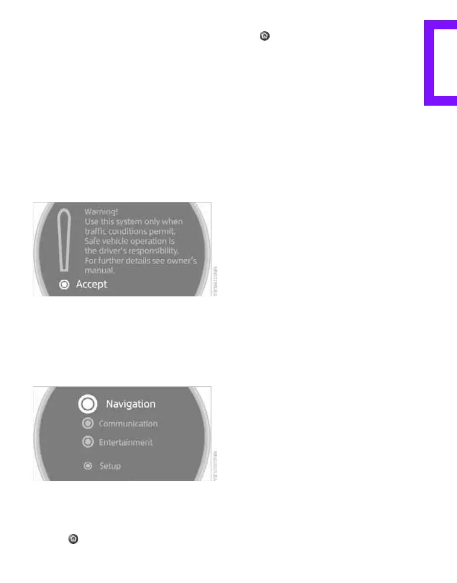 tion, the menu last opened is displayed.
