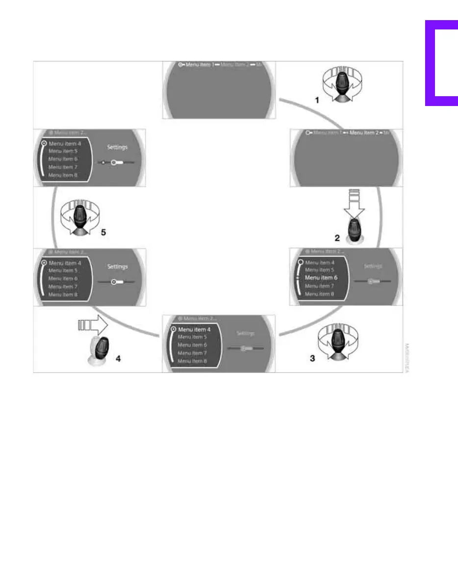 3 Highlighting a menu item: refer to 1