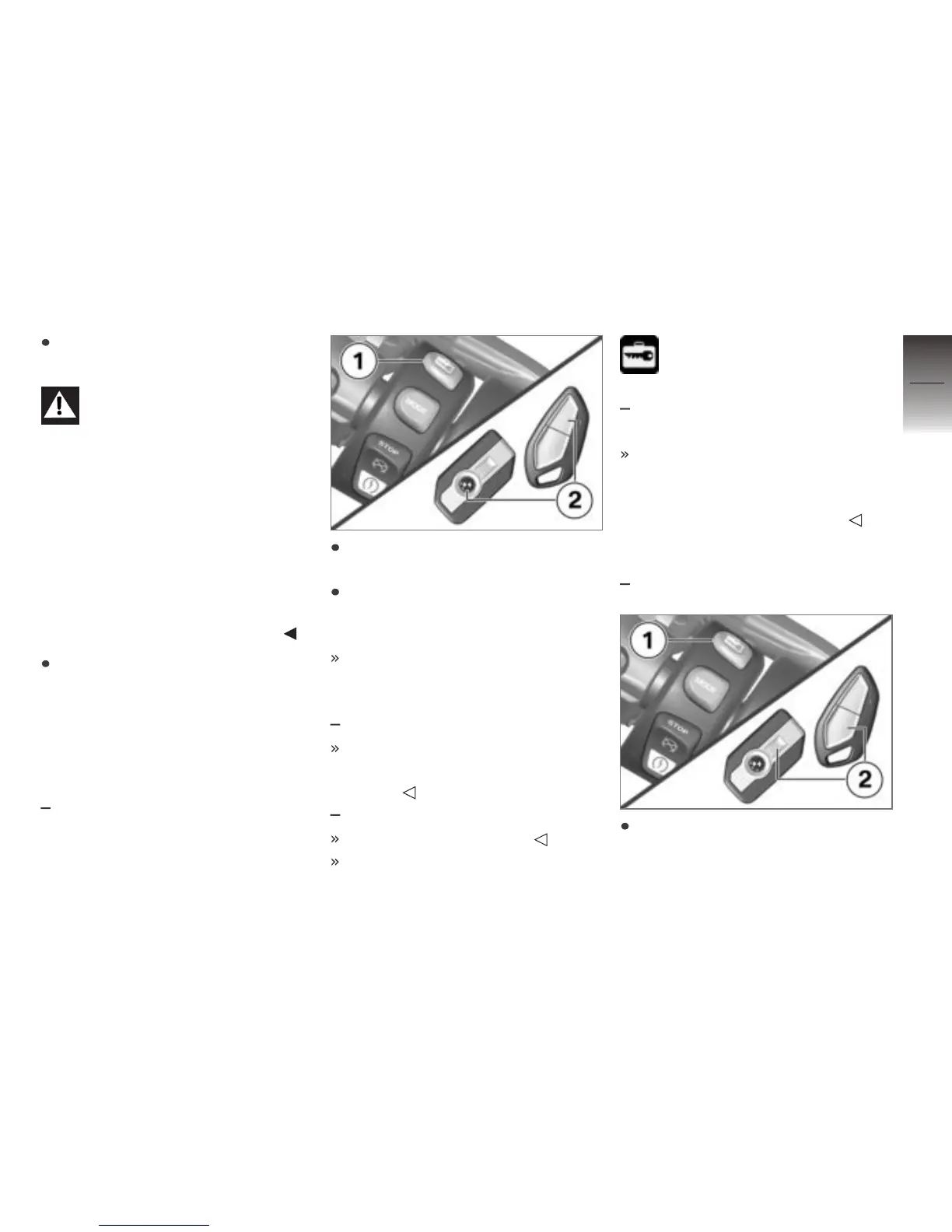 Switch on ignition and press