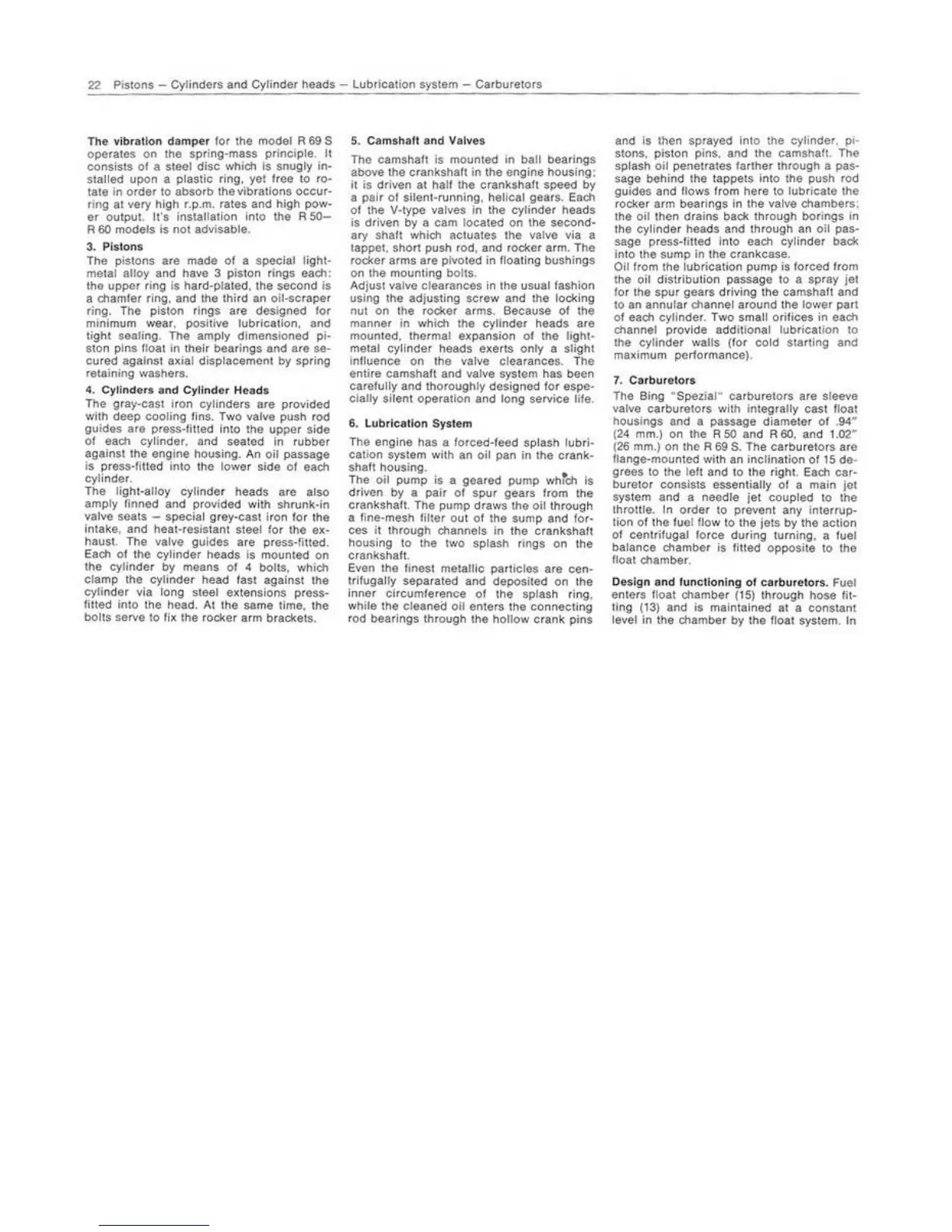 BMW R50 - Pistons, Cylinders, and Heads; Engine Lubrication System; Carburetor System