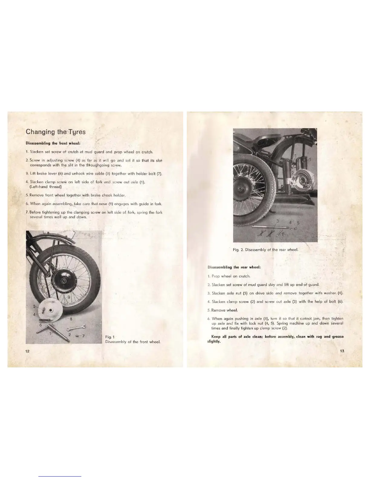BMW R71 - Changing the Tyres; Disassembling the Front Wheel; Disassembling the Rear Wheel