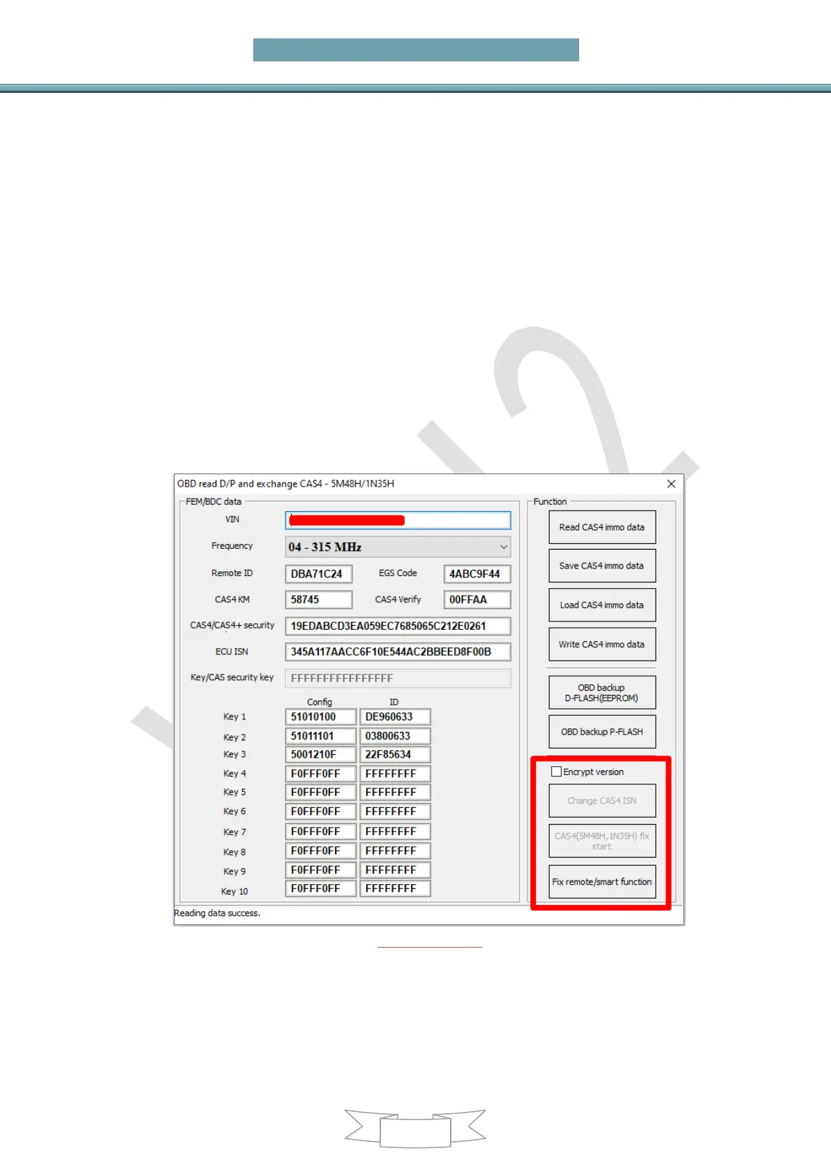 read again until it correct (not display all F). Click "Write CAS4 immo data" and