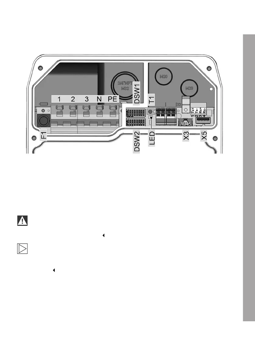 1 Mains connection outer conductor 1 DSW1 DIP switch for configuration