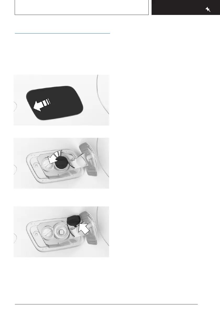 edge, arrow. The fuel filler flap opens.