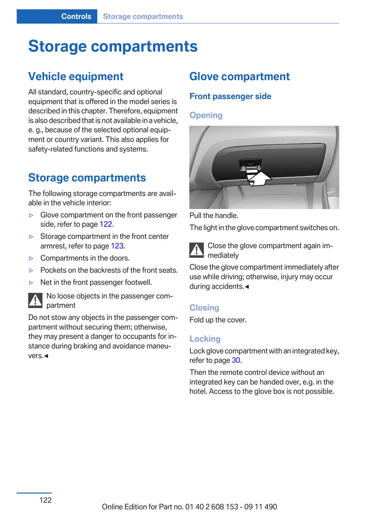 hotel. Access to the glove box is not possible.