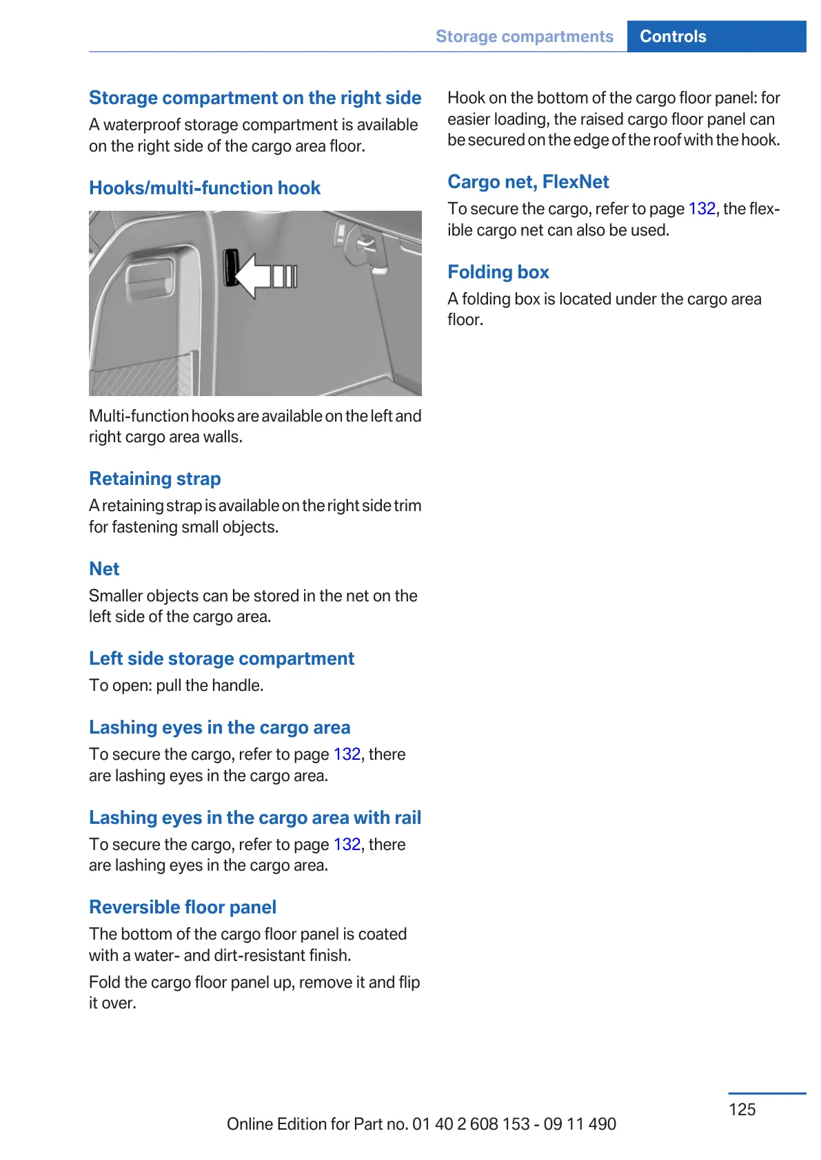 To secure the cargo, refer to page 132, the flex‐