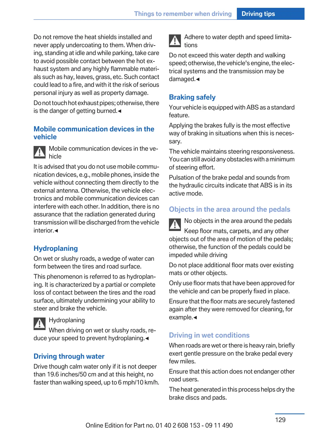 When driving on wet or slushy roads, re‐