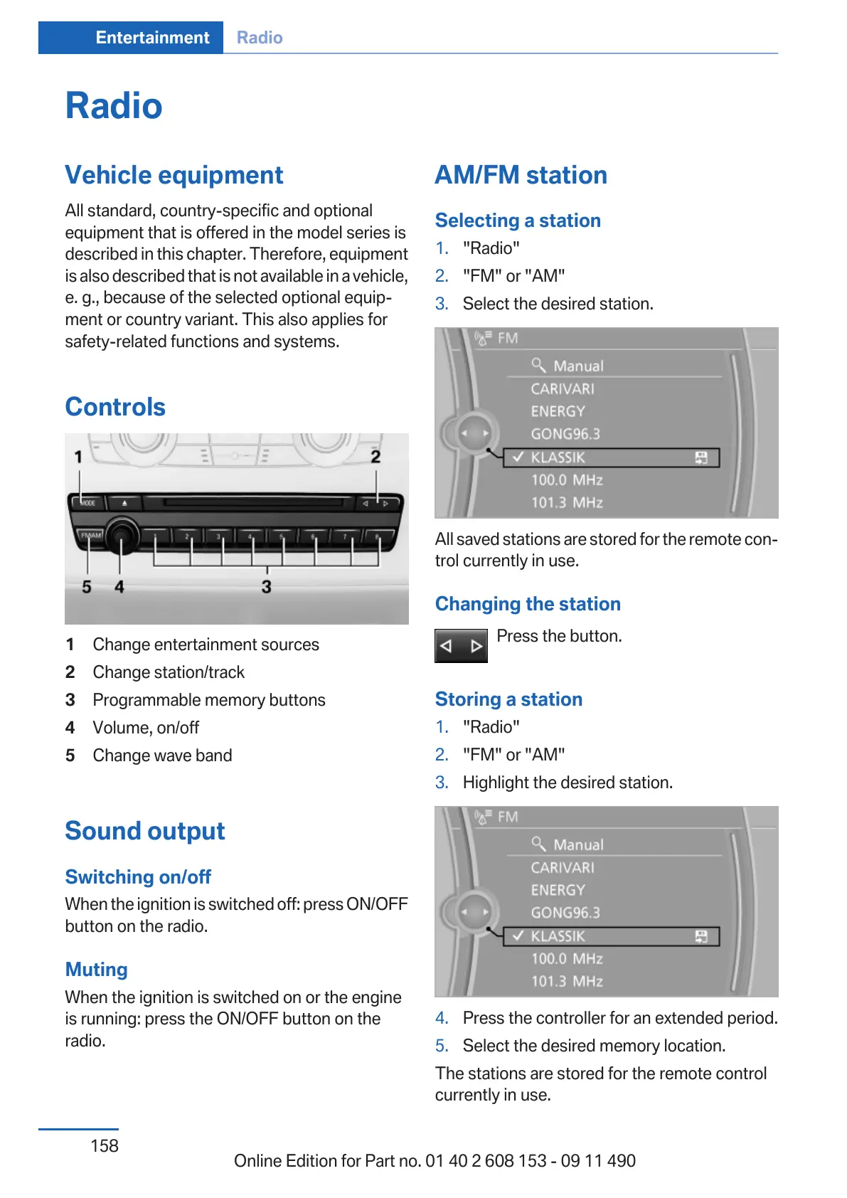 Online Edition for Part no. 01 40 2 608 153 - 09 11 490