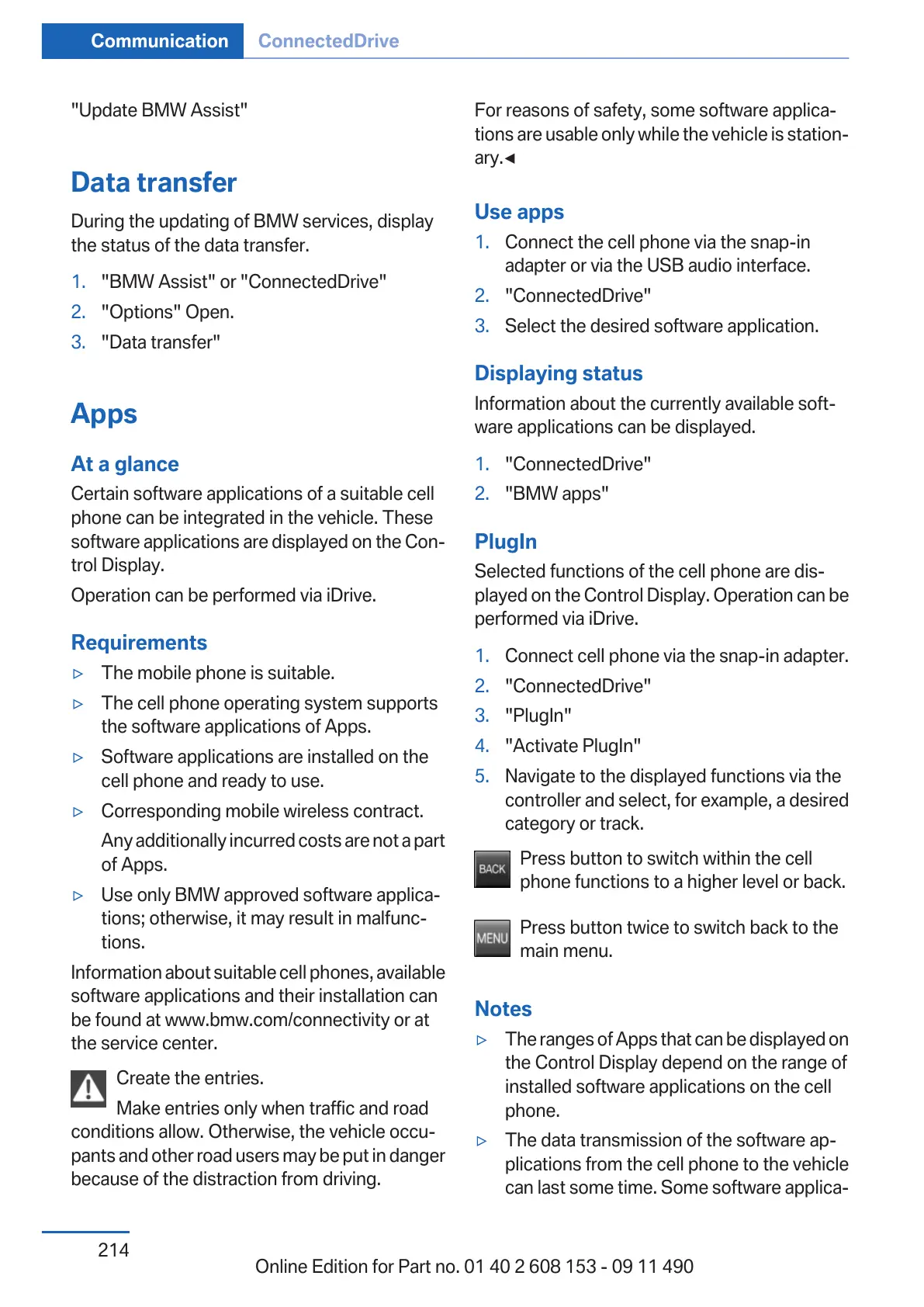Online Edition for Part no. 01 40 2 608 153 - 09 11 490
