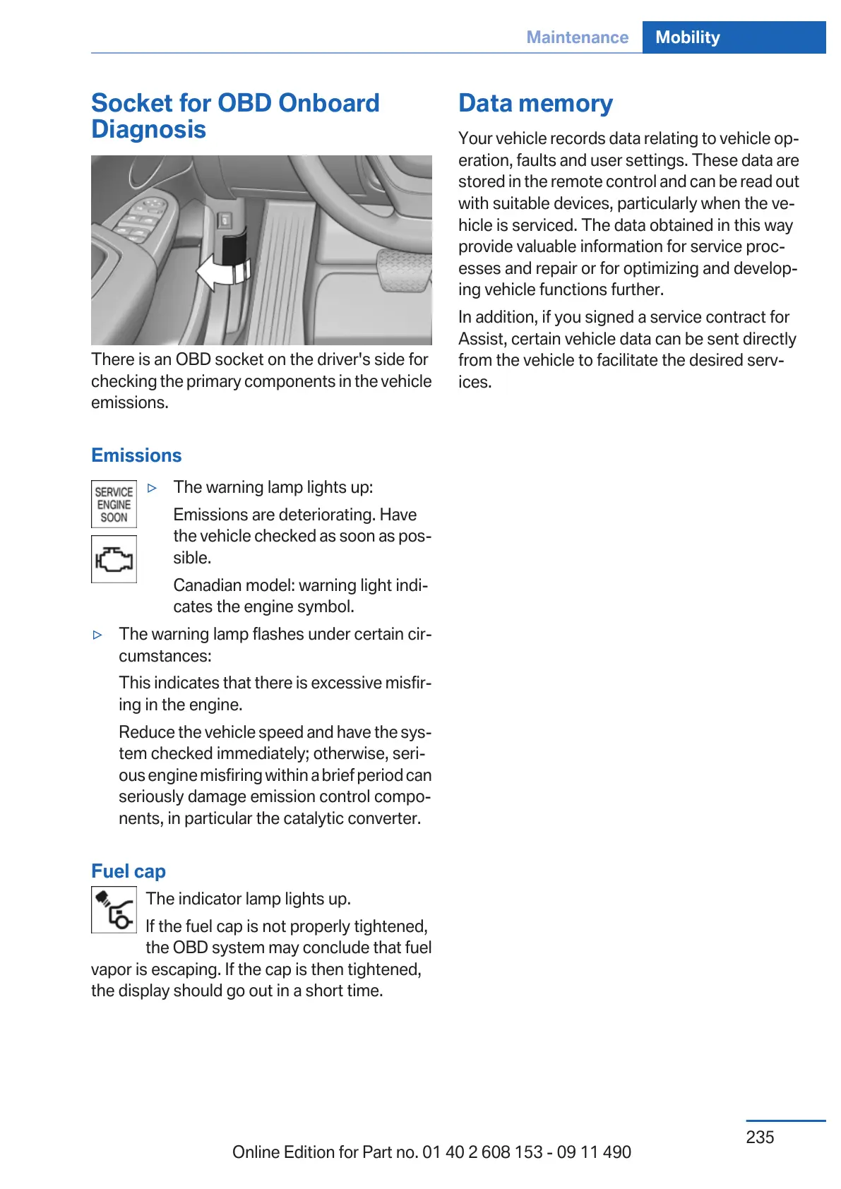 Online Edition for Part no. 01 40 2 608 153 - 09 11 490