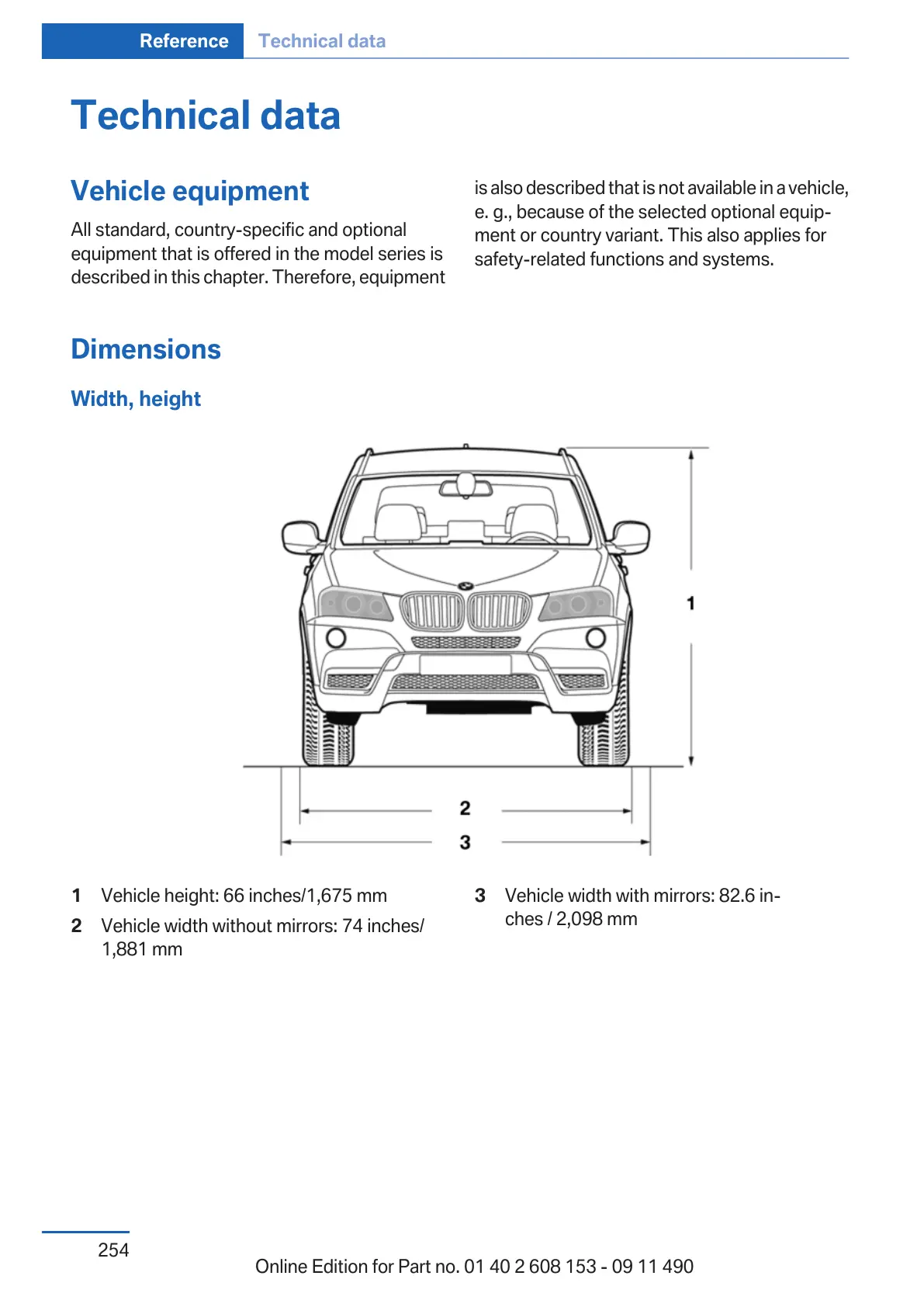 1 Vehicle height: 66 inches/1,675 mm