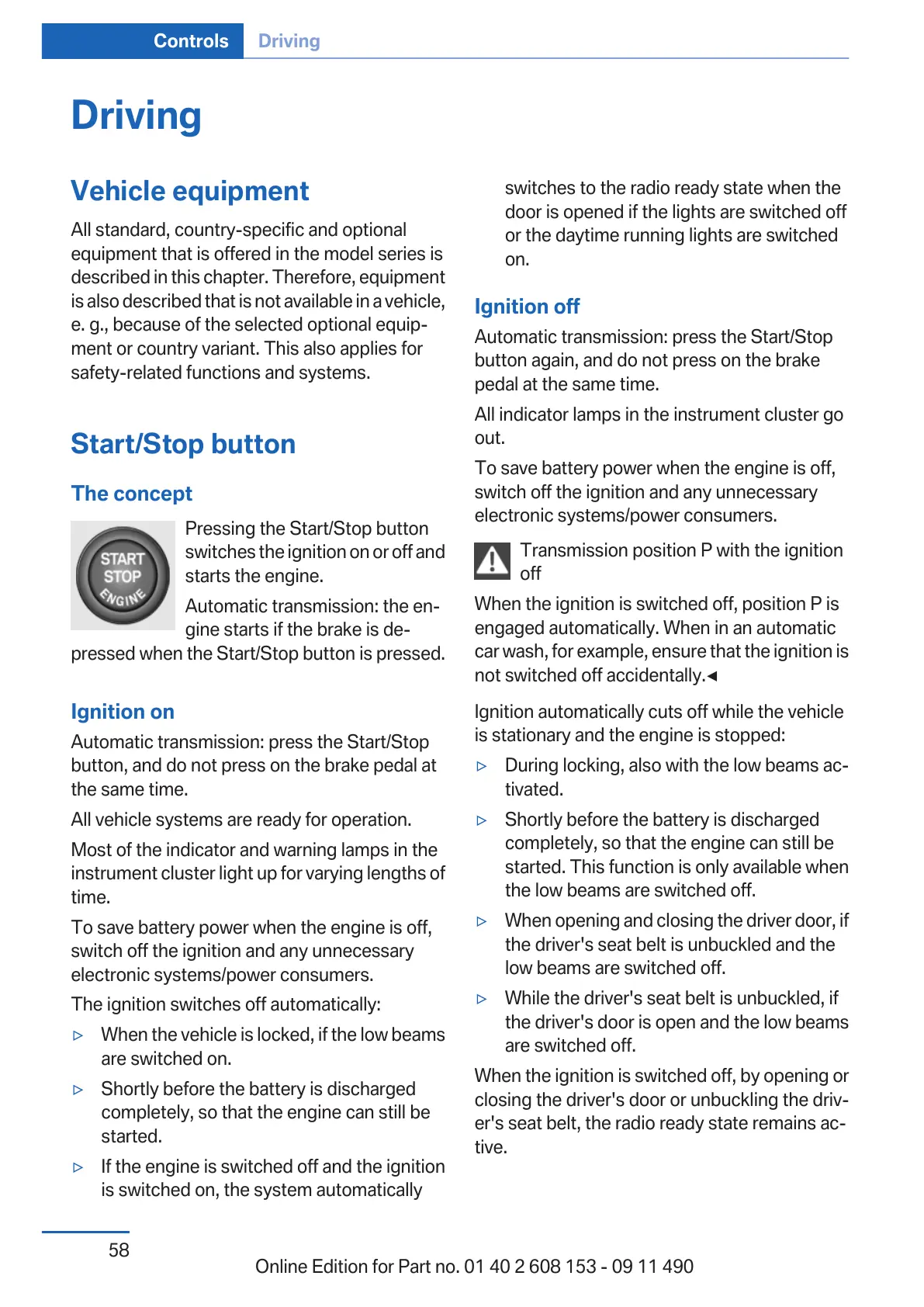 Online Edition for Part no. 01 40 2 608 153 - 09 11 490