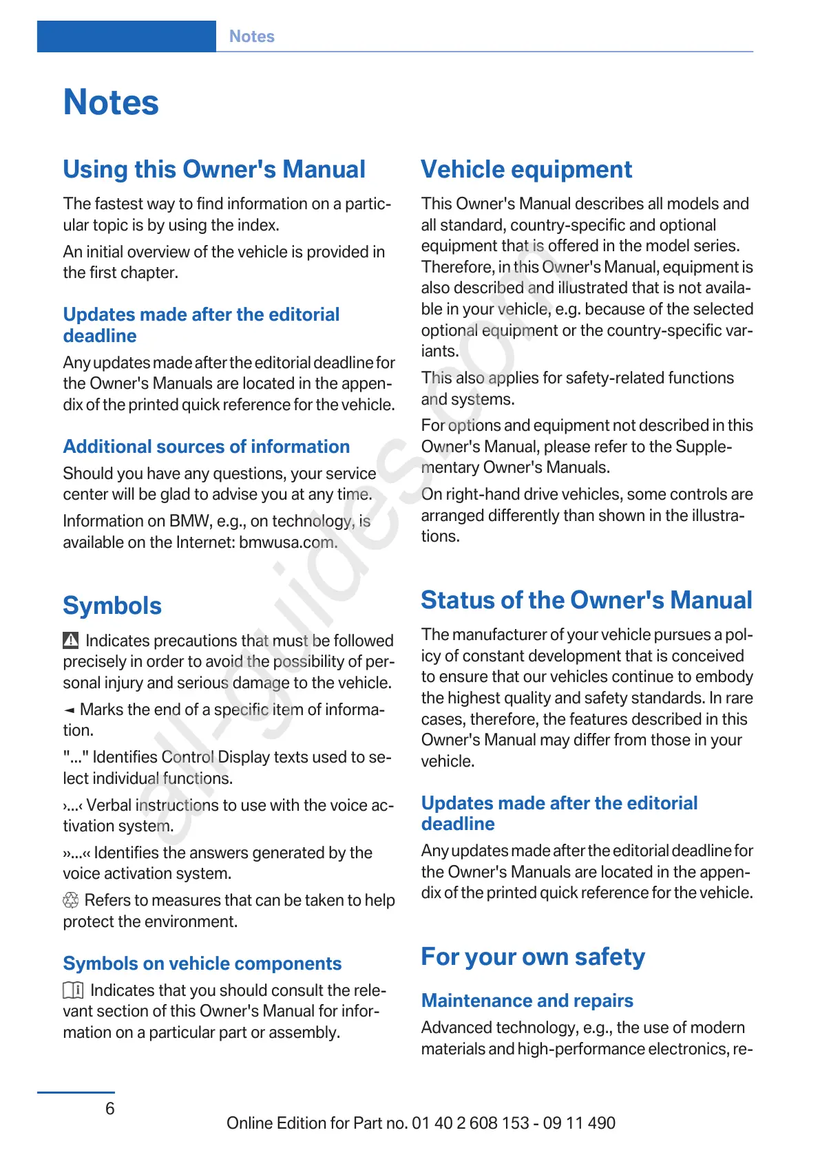 Online Edition for Part no. 01 40 2 608 153 - 09 11 490